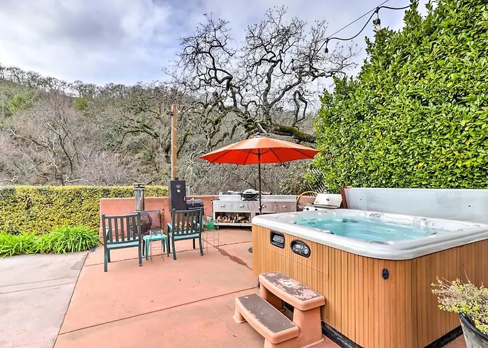 Situated in a historical neighbourhood, the 2-bedroom Wine Country Retreat At Private Creekside House! Villa welcomes guests with an outdoor swimming pool, a Jacuzzi. Offering Wi-Fi, this property is located a 12-minute walk from Glen Ellen Village Market.
